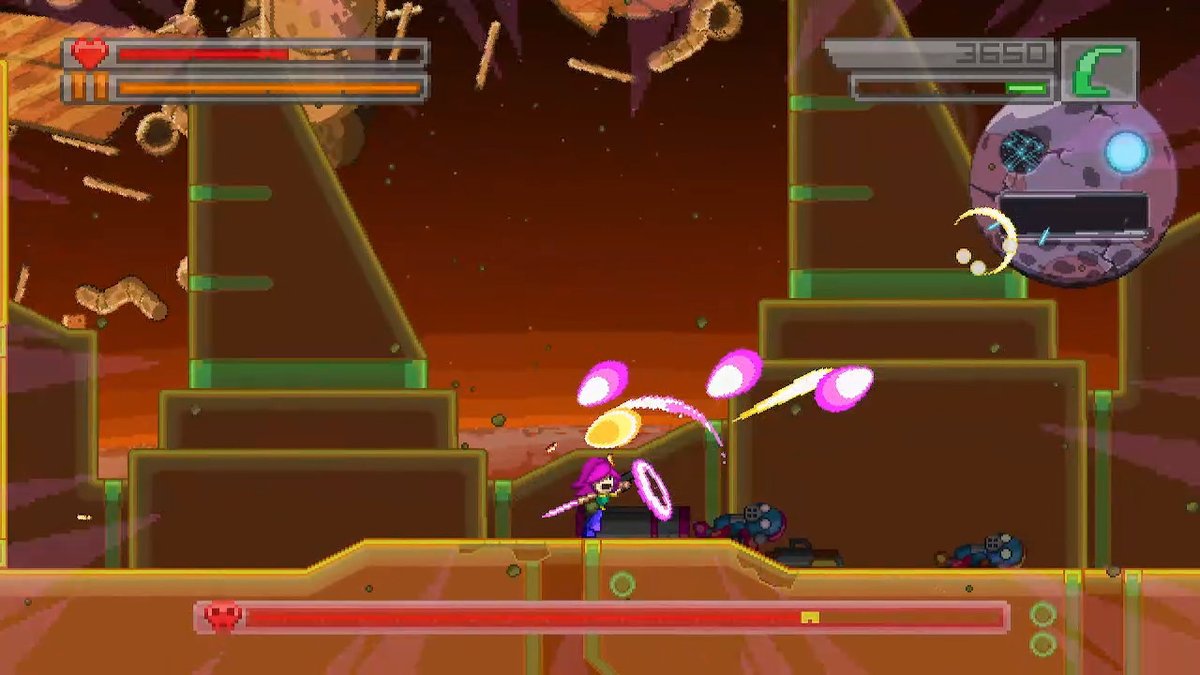 Presentation overall is good and much better than the original’s. Sprite quality is improved throughout the game; they fixed odd looking sprites and animations from Bleed 1. Bleed 2 also reintroduces some enemies and bosses from Bleed 1; they look better than ever with a heavier emphasis on shading and a “less is more” focus. Specific visual effects, such as the dash, look brilliant in this style too. The music is always amazing, there are little to no repeating tracks, and the music feels much more prominent on your adventure sort of like the music does in Classic Sonic or Mega Man games. The music itself sounds like something you’d find in a Genesis cartridge. Sound design is great the sounds are satisfying, crunchy, and never get grating. All of them are a definite improvement over Bleed’s.