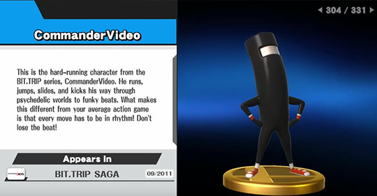 Let’s begin with how Smash has included indies in the past. In Super Smash Bros. for both the Wii U and 3DS, Commander Video from the Bit.Trip franchise was included as a trophy. Trophies in Smash were little more than a 3D model and character description, but they still should be noted. The Commander, and leading indie of the Wii, has the notable distinction of being the first indie represented in Smash. So what’s special about Commander Video? Bit.Trip is one of the first indies to have made it to a Nintendo console on their own. The Bit.Trip franchise was a leading force on WiiWare, and was even the first officially dubbed “Nindie”. Commander Video has certainly accomplished a lot to earn that trophy.