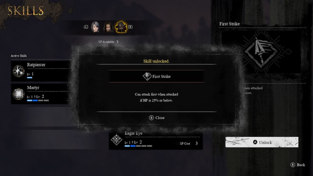 Fortunately, there’s some relief built in here as well. There’s a skirmish mode where you can work on leveling up the Ashen Hawk Brigade before you get totally out of your depth and slaughtered repeatedly. You can replay any level you’ve completed and grind your characters to their best (and strongest) selves. However, chests and items are not replenished in Skirmish mode, meaning that supplies are still limited so be careful!