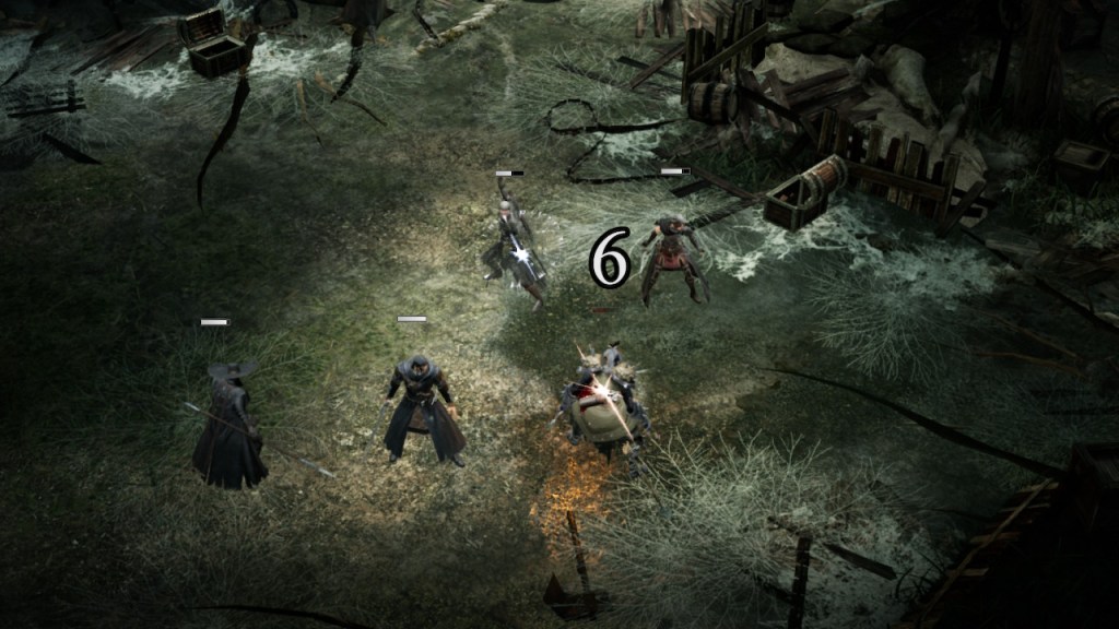 Defense consists of blocking or setting characters to defend others. Several characters are able to offer significant defenses and everyone can block to cut damage in half. You’ll also get one healing draught per person, allowing you to replenish some hit points but most combat is a slow attrition of HP followed by occasional healing. There are two points per map where you can heal and replenish a draught, but there are five of you and there’s never enough to go around.