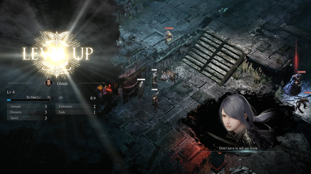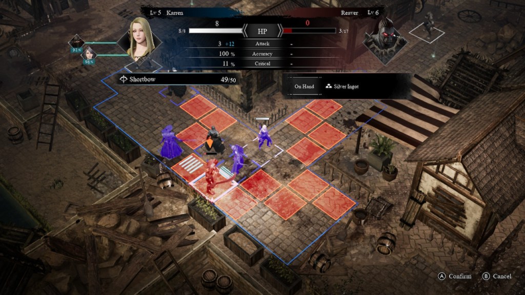 While the menu system is streamlined compared to other SRPGs, it’s also a bit odd. None of the equip buttons are intuitive and accessories have to be accessed through a different sub-menu than weapons. Wandering back and forth through the menu system is a bit of a hassle, but it’s somewhat forgivable considering that you’re mostly here for the strategy. Gathering up that post-combat XP is useful too since you can use it to boost the levels of any characters that are lagging behind a bit. But just like everything else in Redemption Reapers, it’s a finite resource that you’ll definitely have to be careful with.