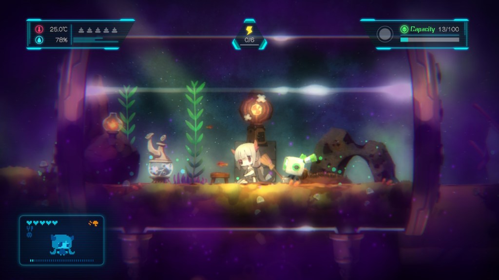 void* tRrLM2(); //Void Terrarium 2 (and we’re just going to call it Void Terrarium 2) picks up right where the first game left off. Robbie, the faithful dog-like robot companion and factoryAI are both still trying to keep Toriko alive but things are looking grim. The previous terrarium for her has been destroyed after the events of the first game and they’ve temporarily stored her in a suspended animation chamber while they look for a new home! It won’t last forever though. Fortunately, it won’t be too long until this oddly matched pair manage to create a new home for Toriko and you can try and protect her all over again. Even though it’s a direct sequel, this is also a really good jumping-on point for new players as the recap of previous events is simple but effective and the gameplay is introduced well.