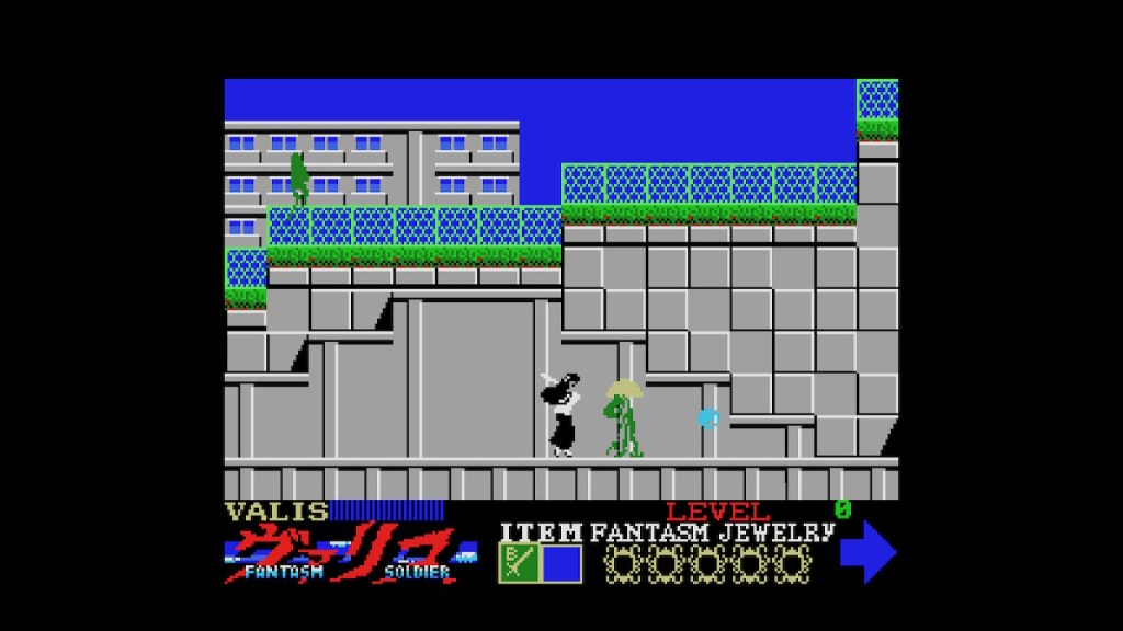 Last but not least, there’s a second version of the first Valis game included here, in case you haven’t gotten enough with the PC Engine and Genesis versions, namely the MSX home computer version of the game. Honestly, it’s great to see archivist principles in game collection, especially ones as obscure as the Valis series though, so this is a welcome addition. Unfortunately, the gameplay itself is not nearly as welcoming with low quality 8-bit graphics, an auto-attack and fire when you power up, and stuttering, hard-to-see enemy sprites that make the game a terribly, messy experience. It’s true to the source material and even boots up with MSX keyboard prompts, but it’s certainly not the shining star of the collection. The music is pretty rough as well, and aside from archival purposes, there’s not really much purpose to playing through this version of Valis.