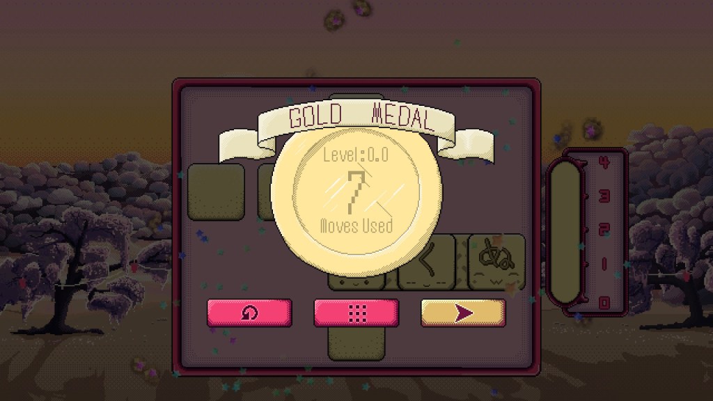 Things get pretty tough pretty quickly though. Your goal is to get all the tiles on the board to match in order to fill a gauge on the right side of the screen. To do that, all the symbols have to align. When they align properly, little hearts appear between them, showing you you’ve got it right. Match them all and you solve the puzzle. Do it in the fewest moves possible and you get a gold medal, followed by silver, then bronze for numerous attempts…but that’s not all.