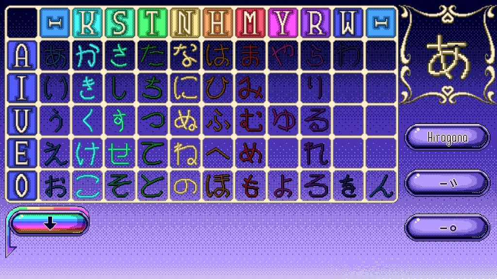 This odd, cutesy little game is designed to teach you hiragana. For the unaware, the Japanese actually use three different alphabets, katakana, kanji, and hiragana. Of the three, hiragana is the easiest and only has 46 shapes called kana (because Kana Quest) which make 72 characters. That’s not to say it’s easy to learn, but you can use hiragana to make most all Japanese words and the shapes are easier to learn. If you want to start…this is definitely the place!